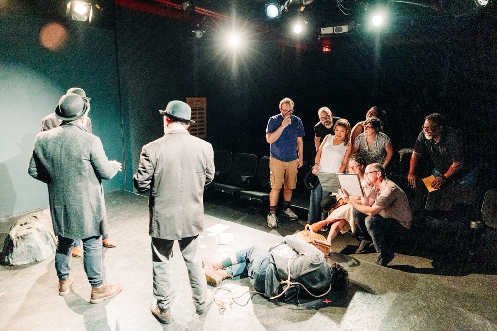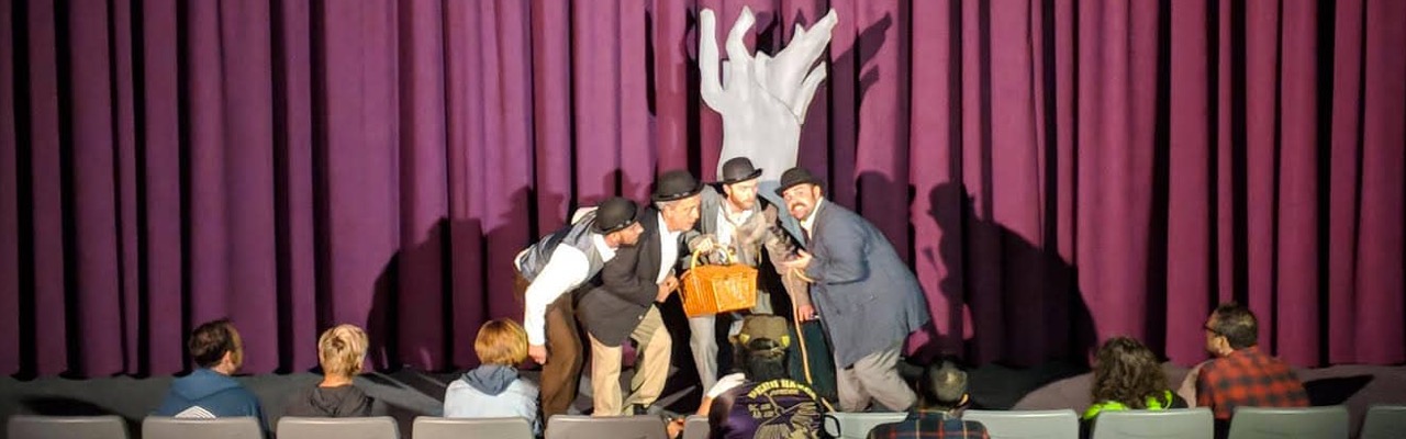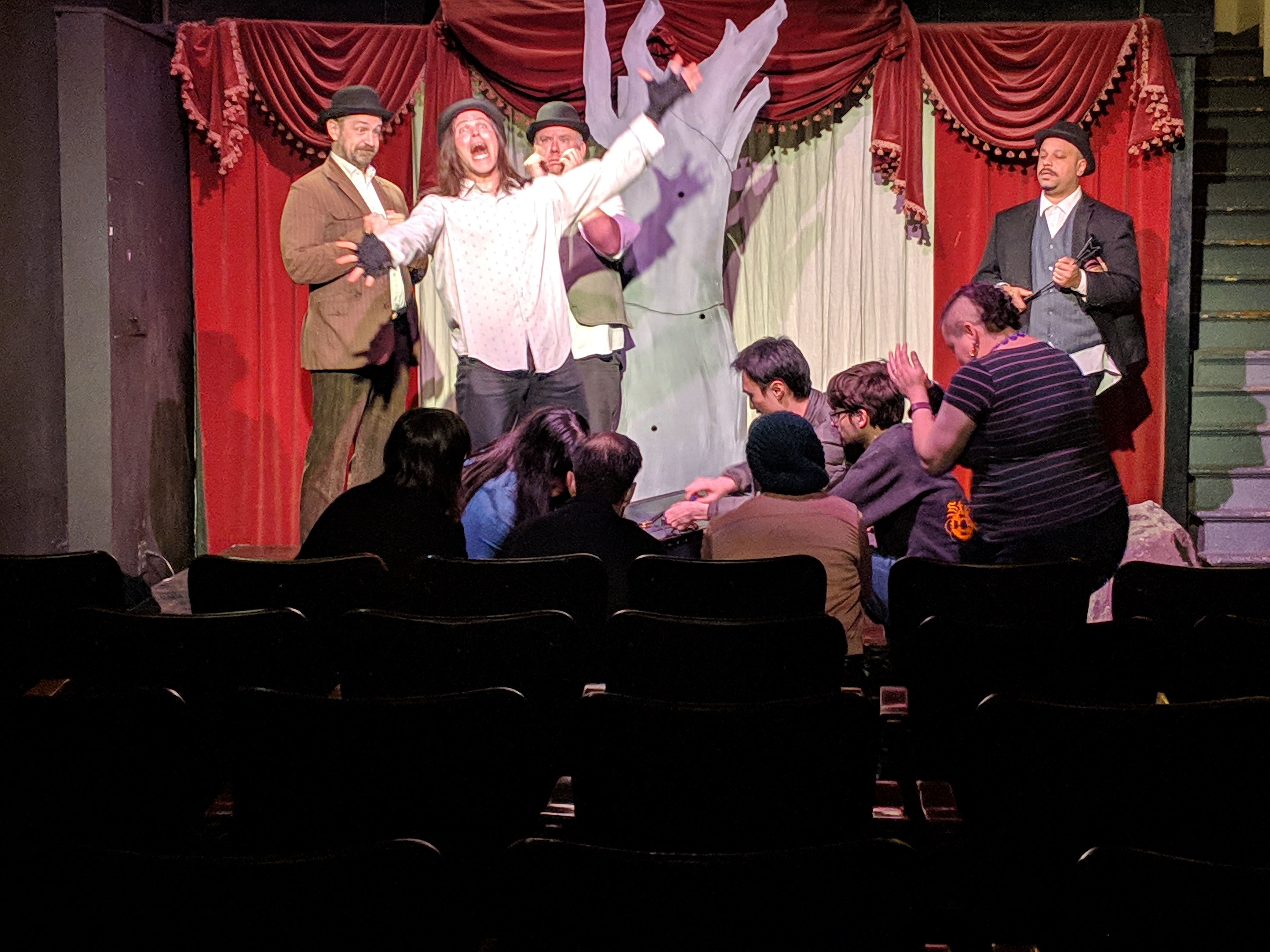 Escape from Godot is a game and a show, the show is the game and the game is the show. An audience of eight participants must work together to explore the space, solve puzzles, call cues, and watch the performance in order to get out before “lawyers arrive to sue everyone in the theater for the entirely unauthorized and disrespectful production.” Without the audience’s focus, communication and cooperation, the show may never end.